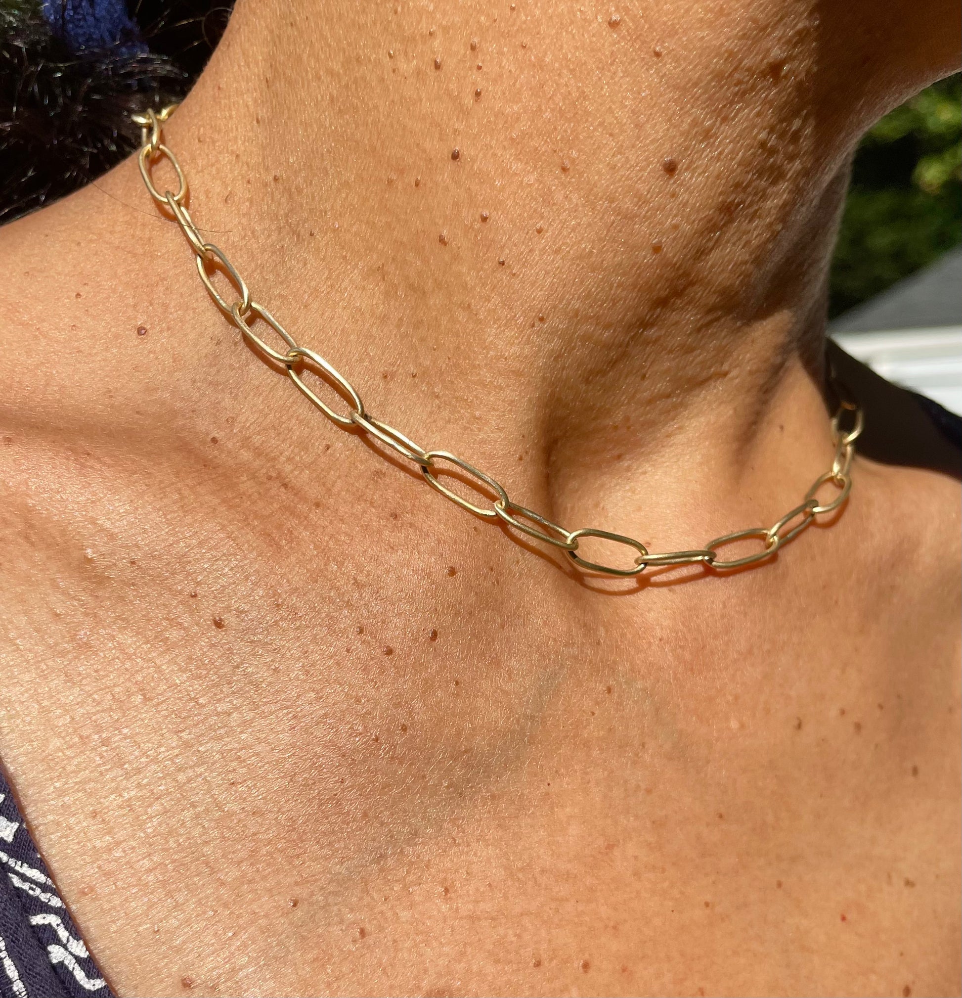 The Handmade Paperclip Chain is carefully crafted link by link. This weighty chain made of 18 gauge wire is available in sterling silver or brass. The chains are made to order at custom lengths, available as both necklaces and bracelets. With a hand crafted S-curve clasp, these chains are easy to put on and remove, while staying secure. Perfect for holding a charm, or wearing alone.